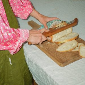 The perfect solution for cutting your homemade sourdough bread. Crafted from a solid wood handle and carbon steel blade, this high quality bow knife will not disappoint. It also works well with tomatoes, onions, cheese, potatoes and numerous other everyday foods. Each knife is handmade and might vary in size, color and design.